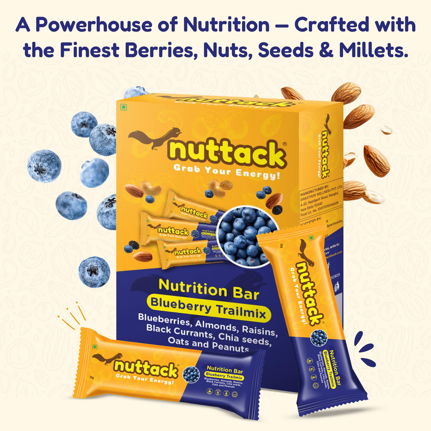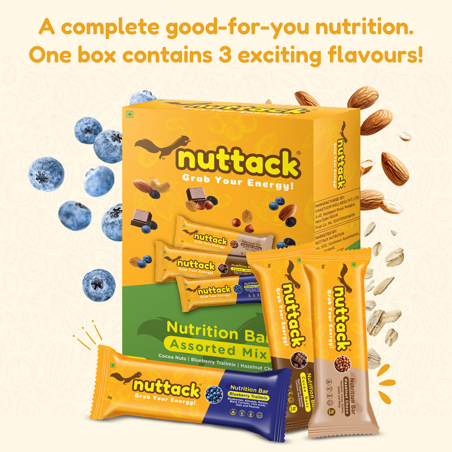 These bars have the Richness of Dark Chocolate, Power of Blueberries and Goodness of Hazelnuts